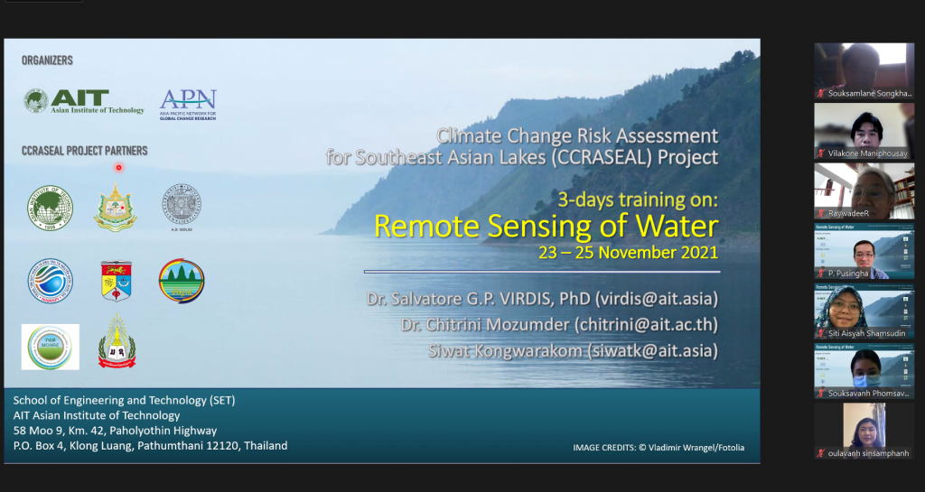The Asian Institute of Technology (AIT), in partnership with the Asia-Pacific Network for Global Change Research (APN), successfully organized the “Remote Sensing of Water” training event within the frame of the research project “Climate Change Risk Assessment for Southeast Asian Lakes (CCRASEAL)”.