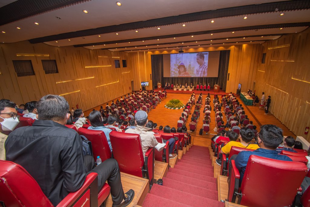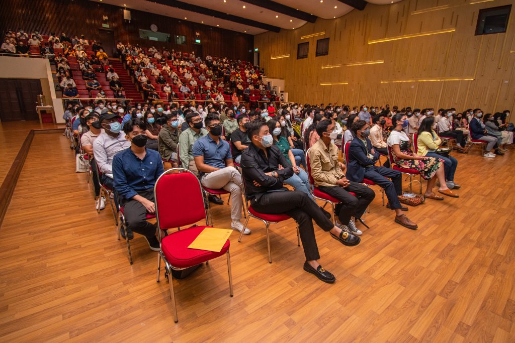 8 August 2022 – Asian Institute of Technology (AIT) welcomed more than 400 new students during a hybrid orientation event held in the AIT Conference Center. Over 250 new students attended the event in person for the first time since the COVID-19 pandemic, while the remaining students joined virtually due to some travel-related issues.