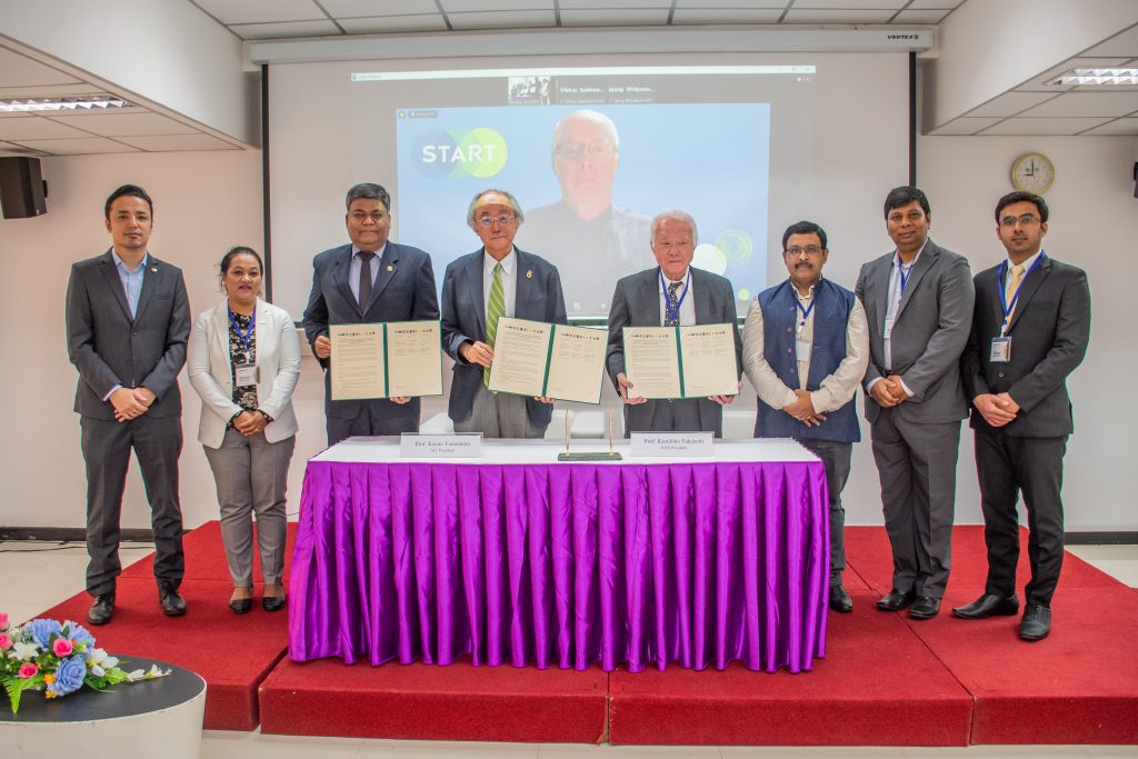 The signing ceremony took place during the Regional Workshop on “Traversing Interconnected Local-to-Global Action Spheres to Advance the Post-2030 Agenda“, held on 17-20 January co-organized by IGES and AIT, specifically the Disaster Preparedness, Mitigation, and Management (DPMM) program, with support from START Inc., VNIT Nagpur, and Thammasat University. Accompanying the AIT President were Dr. Indrajit Pal, Chair of DPMM, and Prof. Abdul Salam, Dean of SERD. Representing OIPA were Dr. Sumana Shrestha, Director of International Affairs, and Mr. Sanjeet Amatya, Director of Public Affairs. Alongside the IGES President were Dr. Bijon Kumer Mitra and Dr. Vibhas Sukhwani from IGES Japan.