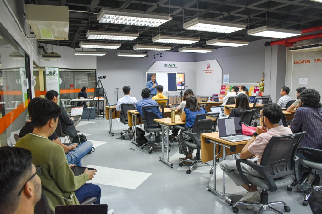Thirteen exceptional teams were chosen out of over 20 applicants to present their innovative solutions during the pitch competition on August 30. These finalists participated in a series of intensive workshops, which covered developing business canvas models, creating Minimal Viable Products (MVPs), and finalizing pitch decks. Mentors guiding the teams included Prof. Dieter Trau, Director of AIT EC; Dr. Lakeesha Ransom, Director of Enterprise Engagement at AIT EC; Dr. Gopi Krishna, Affiliated Faculty at the School of Management; and Dr. Paul Eaimkhong, Innovation Manager at the National Science and Technology Development Agency (NSTDA).