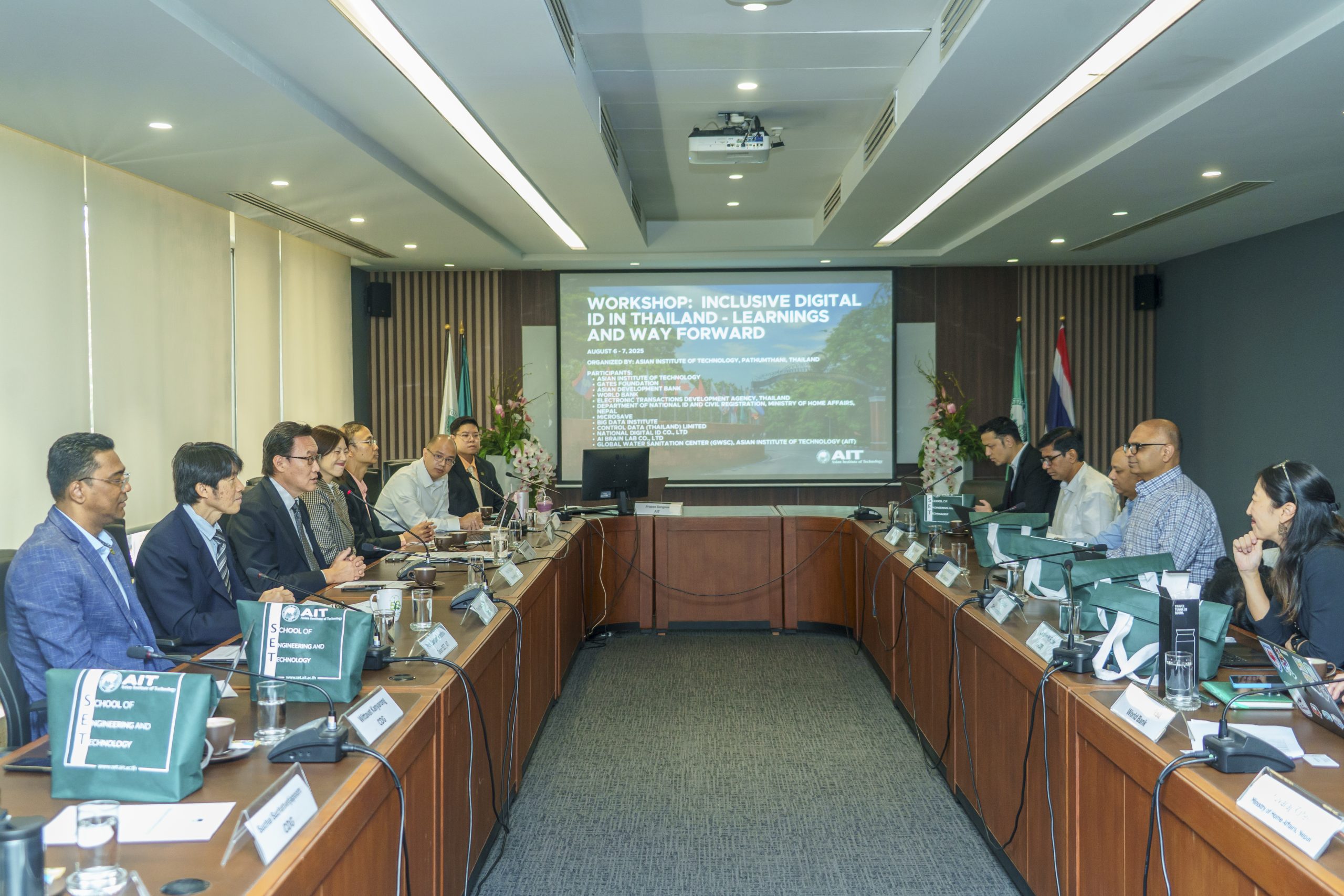 The workshop, held on August 7–8 at AIT’s Pathum Thani campus, was organized by AIT and attended by the Gates Foundation, the Asian Development Bank, the World Bank, Control Data Group (CDG), Electronic Transactions Development Agency (ETDA), National Digital ID Company Ltd. (NDID), Microsave Consulting (MSC), AI Brain Lab (AIBL), BIG Data Institute, Government of Thailand, and the Ministry of Home Affairs, Nepal.