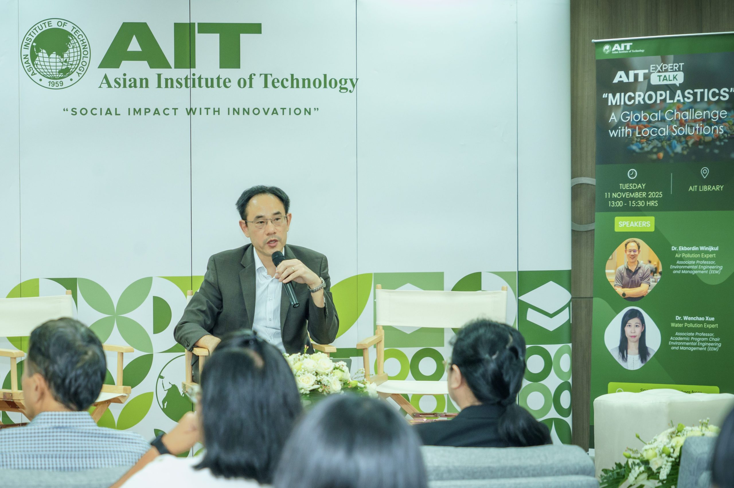 The Office of Communications and Public Affairs at the Asian Institute of Technology (AIT) successfully hosted its inaugural AIT Expert Talk, “Microplastics: A Global Challenge with Local Solutions,” on 11 November 2025 at the AIT Library. The session highlighted AIT’s commitment to addressing emerging environmental challenges and fostering knowledge exchange among government agencies, academia, and the private sector.