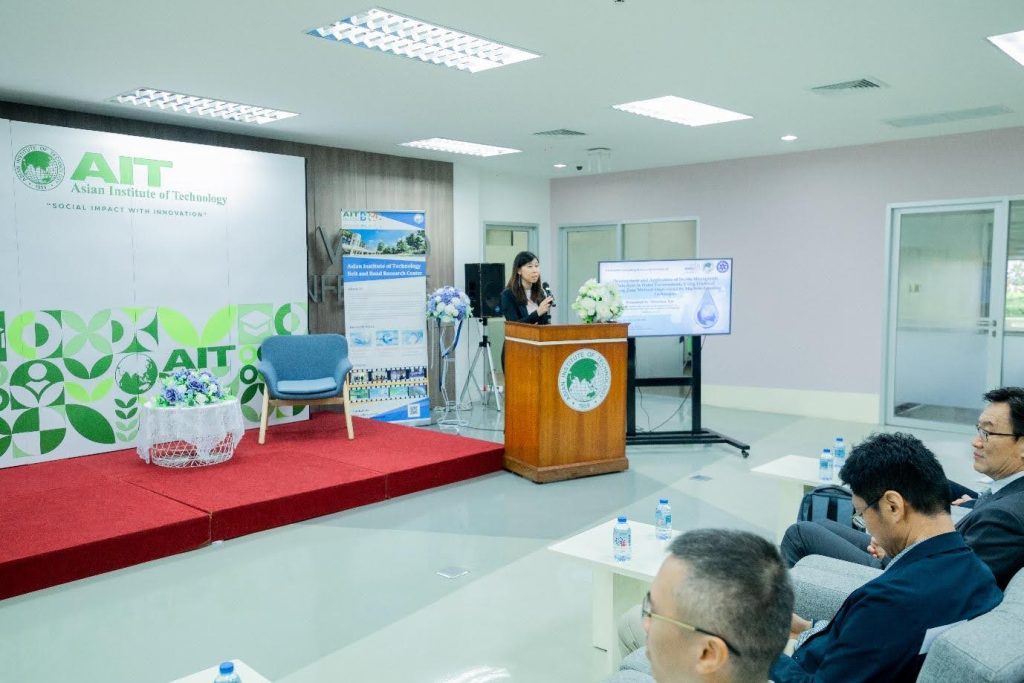 Dr. Wenchao Xue, Principal Investigator of the project and a faculty member of the Department of Water Resources and Environmental Engineering at AIT, presented an overview of the project’s vision, objectives, and three-year implementation plan. She explained that integrating the Electrical Sensing Zone (ESZ) method with machine learning techniques is expected to address key limitations of current microplastic monitoring approaches, particularly their reliance on labor-intensive laboratory analyses. Dr. Xue also outlined the project’s anticipated scientific outputs, capacity-building components, and relevance to water environment protection in Belt and Road countries.