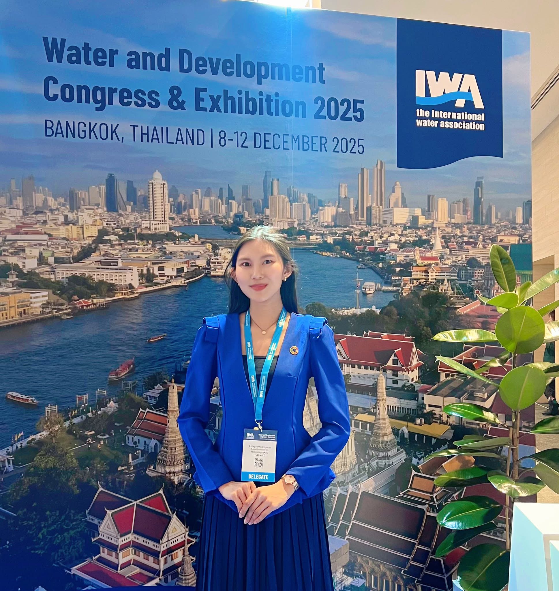 Through AIT, I continued to engage actively in regional initiatives aligned with the Institute’s mission. I currently serve as an ASEAN Youth Organization Ambassador (Thailand Chapter), contributing to youth-led regional dialogue on sustainable development. I also participated in the IWA Water and Development Congress & Exhibition (WDCE) 2025, where AIT is one of the co-organizers. Attending this global forum as part of the AIT academic community allowed me to engage directly with water professionals, policymakers, and researchers working on global water security and resilience.